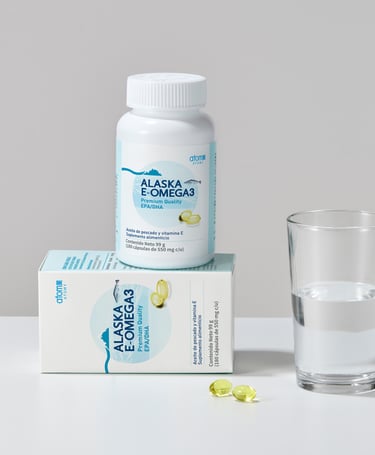 Suplemento de ácidos grasos de omega3 con EPA y DHA formulado para apoyar le bienestar diario.