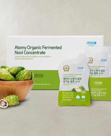 Concentrado de noni orgánico fermentado, sin aditivos artificiales, para el bienestar diario.