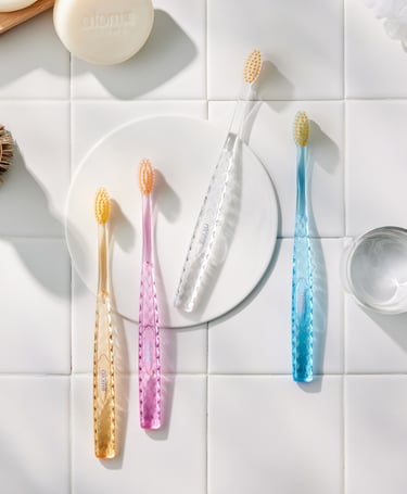 Cepillo dental con cerdas ultrafinas y polvo de oro que ayudan a limpiar eficazmente y reducir bacterias.