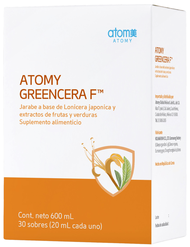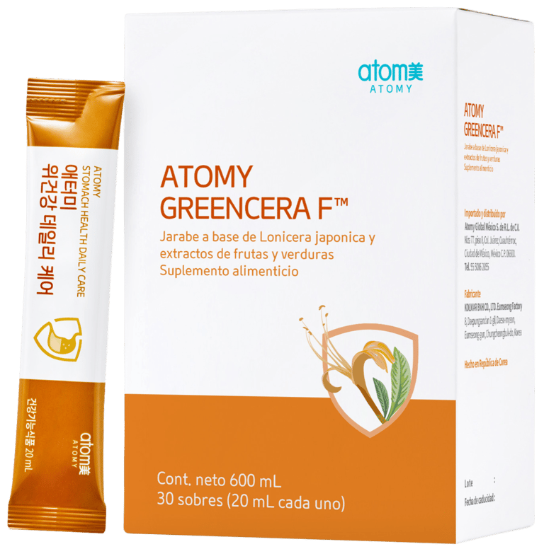 El Atomy Greencera F es un suplemento especializado en el cuidado del estómago. Su ingrediente estrella es el extracto de capullo de flor de madreselva, diseñado para proteger la mucosa gástrica y mejorar las molestias digestivas provocadas por el éstres, los malos hábitos alimenticios